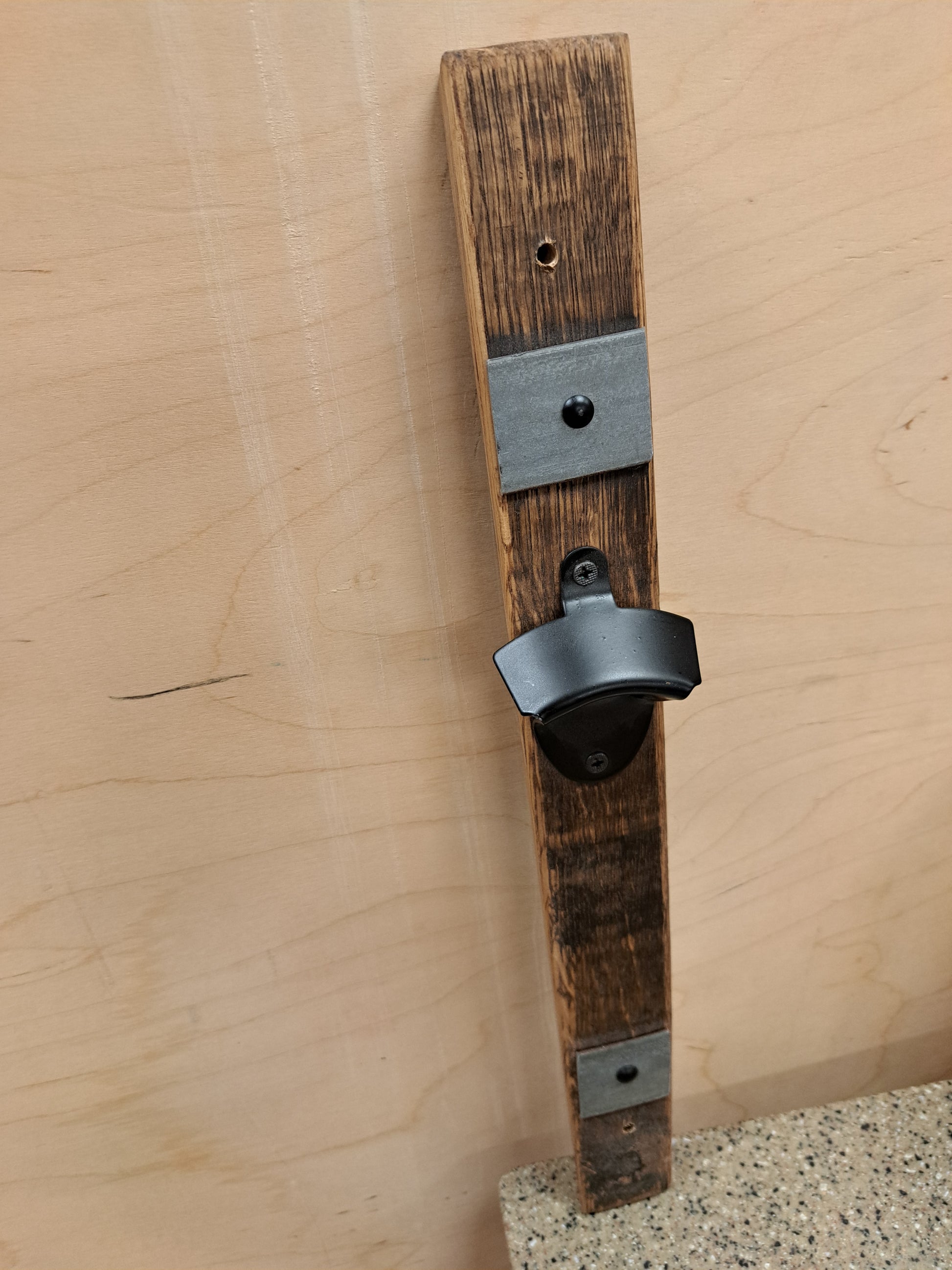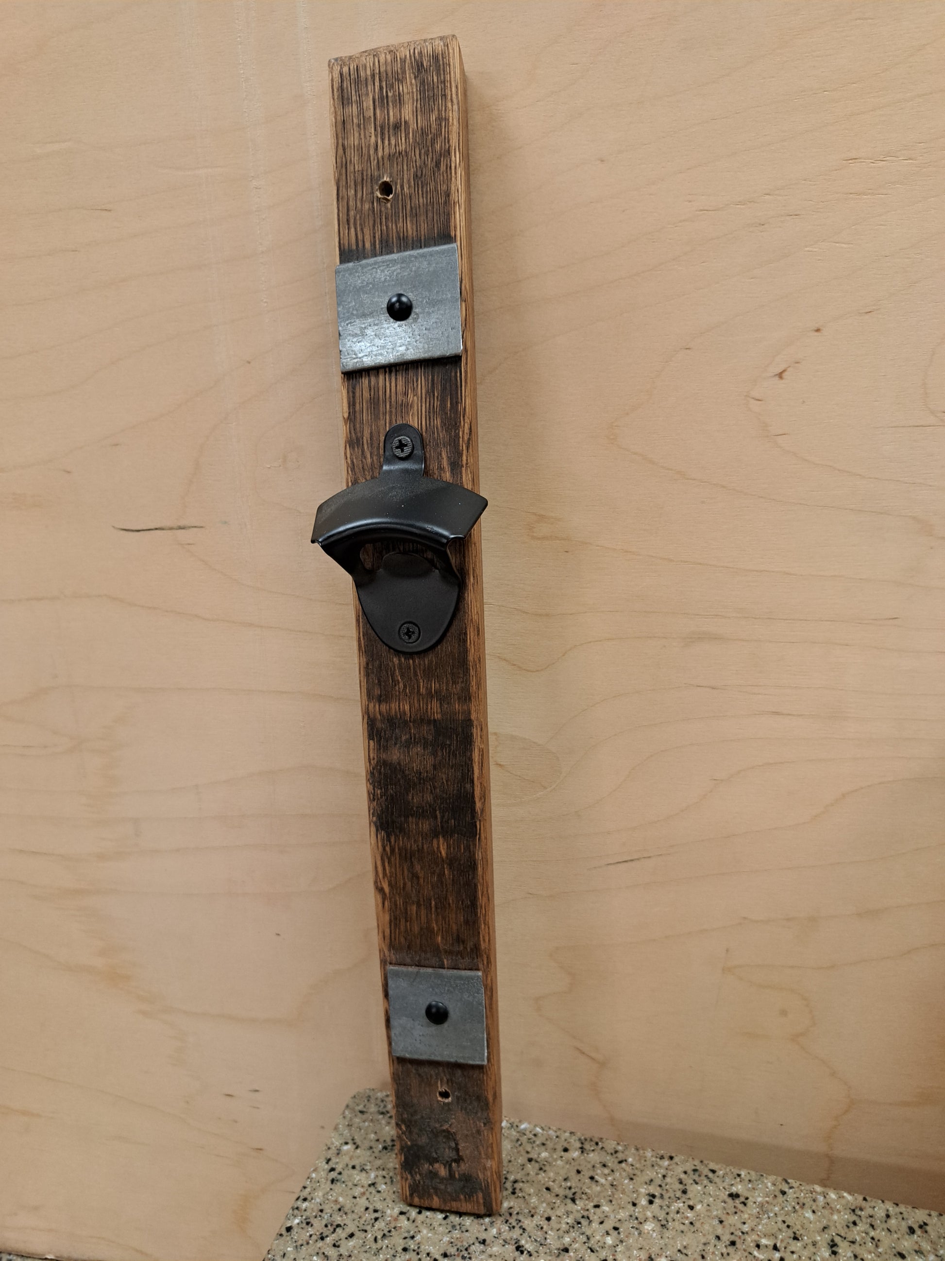 Add a great accent with purpose to your bar! Our Bottle Opener is handcrafted from upcycled whiskey barrel staves. Each oak stave has hand rubbed stain, one side displays the white oak, the other shows the black char and includes authentic barrel band accents.