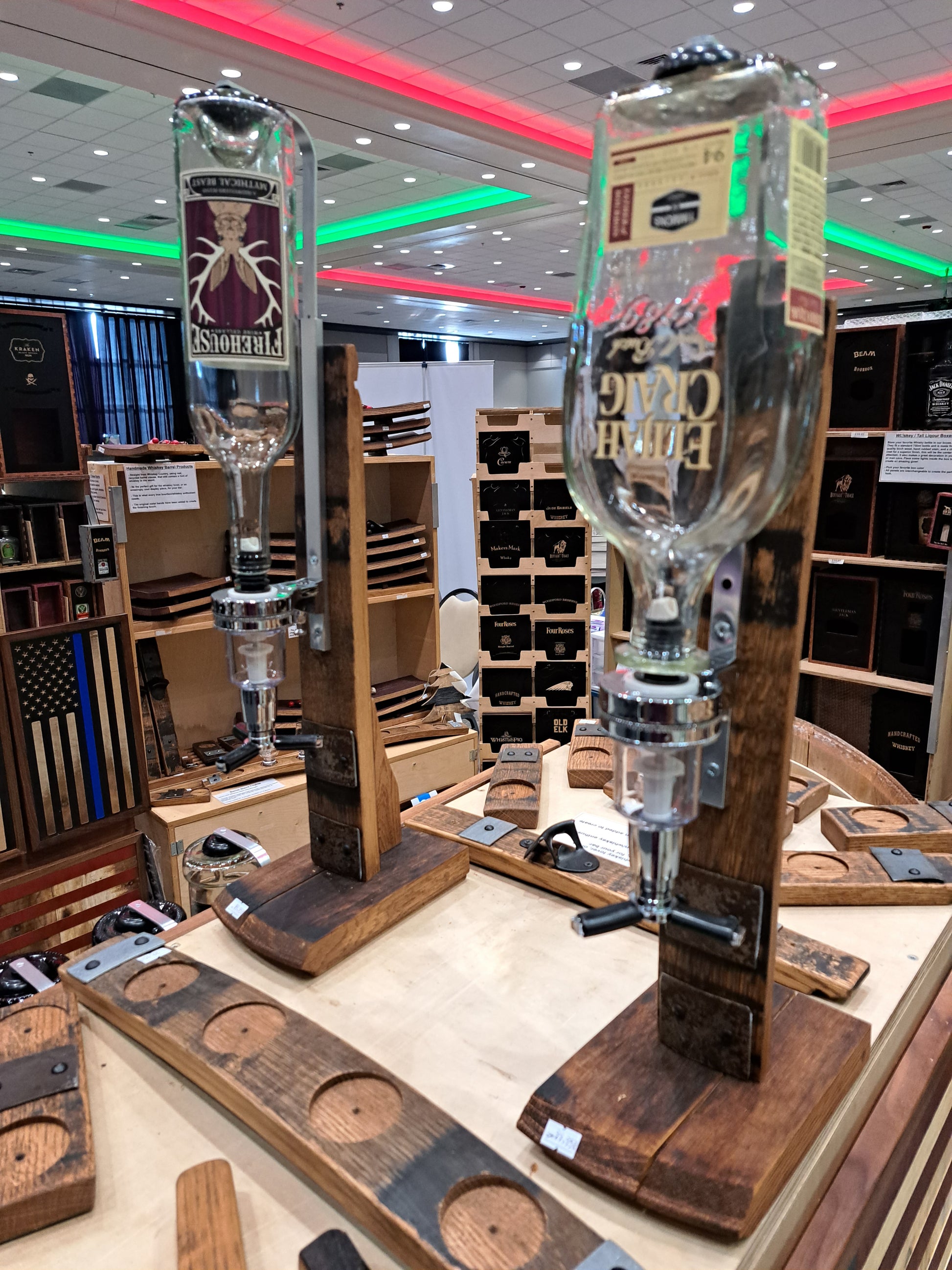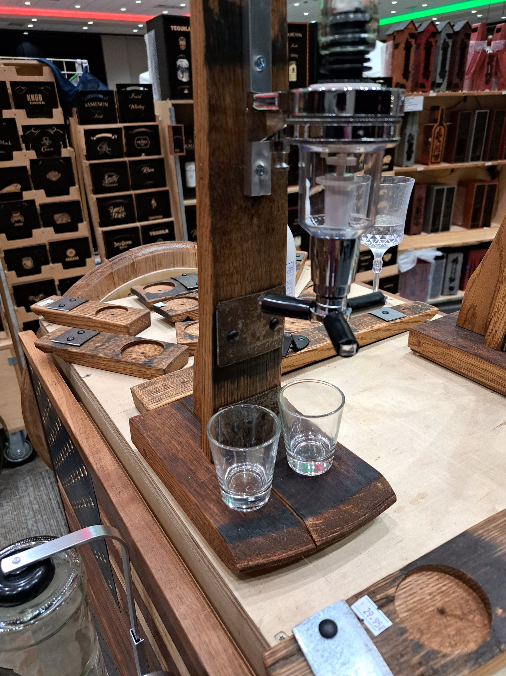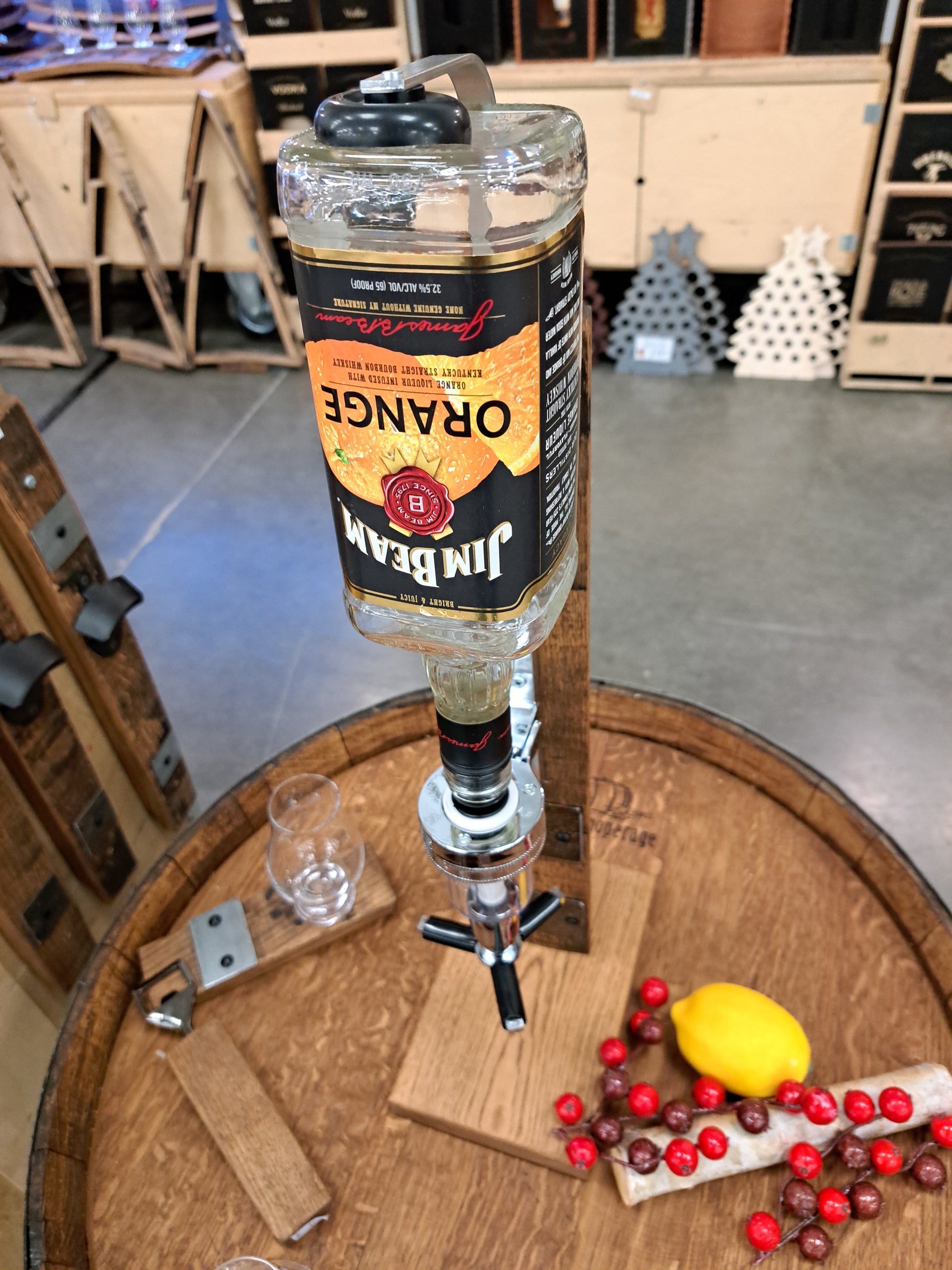 This stunning addition to your bar counter is sure to impress! Each Tabletop dispenser is made from repurposed whiskey barrels and coated with hand rubbed stain. The base is created from the Barrel Tops and the dispenser is attached to the barrel stave. I make sure to keep the barrel charring for an even more unique look. This amazing dispenser has the perfect measured shot ready for you anytime. once you fill you glass from the reservoir it will reload another shot, beckoning you for more. Heaven on the counter!
