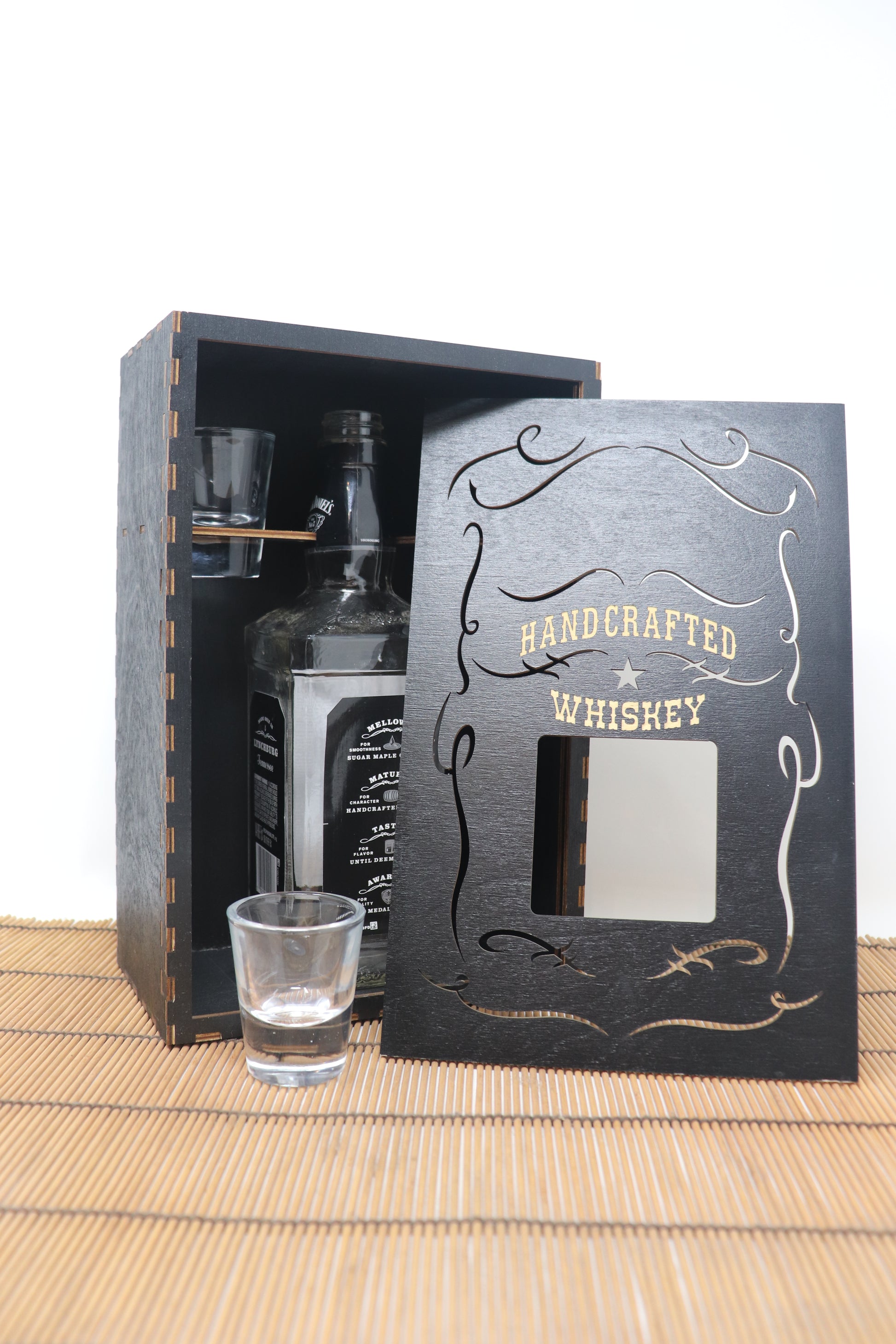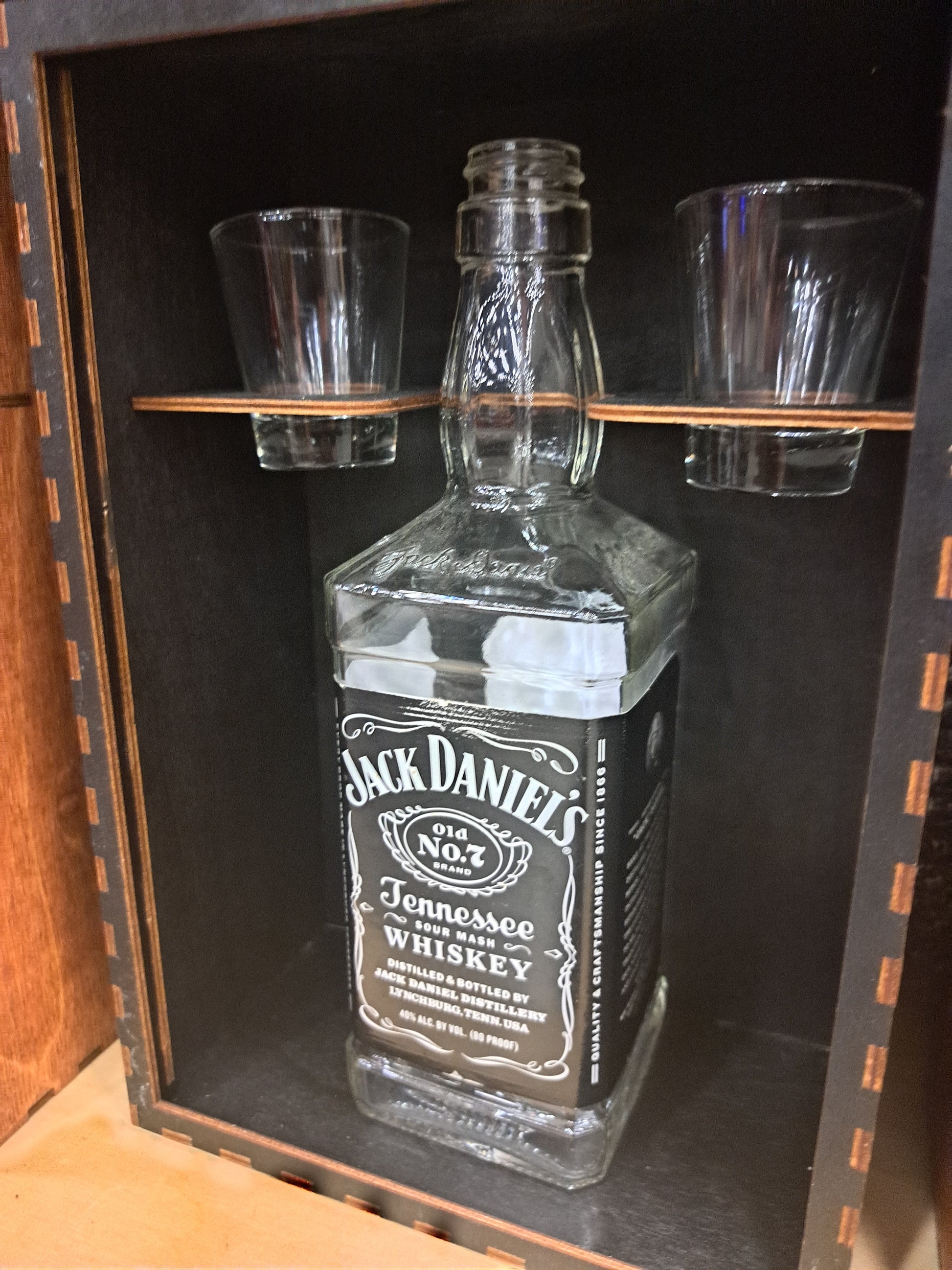 This box come with 2 shot glasses and will fit your favorite Tall 750ml Bottles.